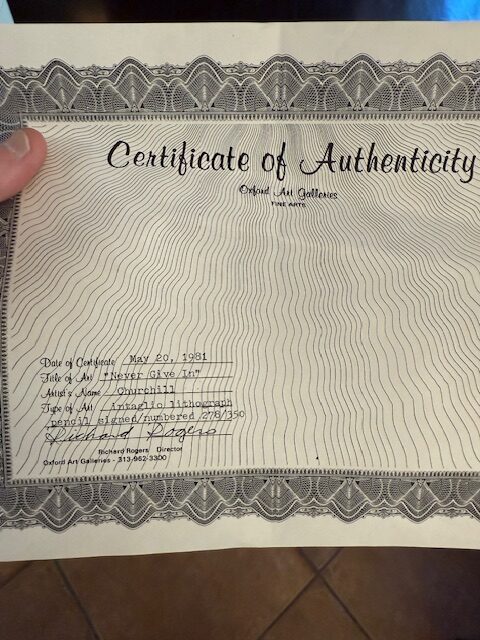 ‘Never Give In’ Intaglio Lithograph by Sarah Churchill Pencil Signed & Numbered 278/350